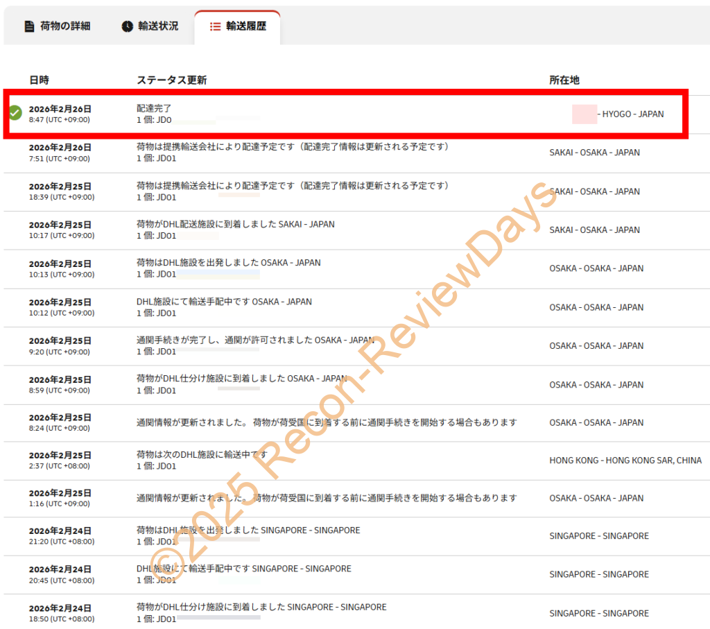 2026年2月24日(火) 11時49分 交換製品(Ryzen 9 9900X3D)がDHLでシンガポールから発送