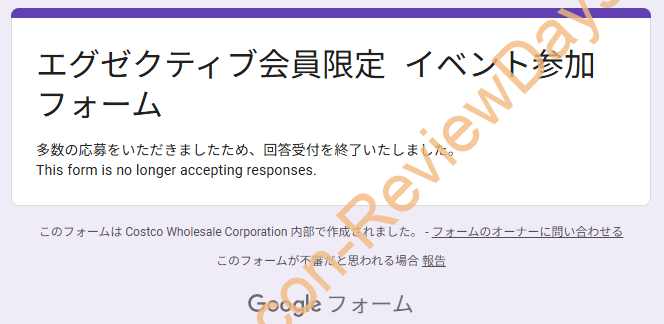 初めに定義した2部制の「イベント開催時間(午前の部: 朝8時~10時、午後の部: 夜20時~21時30分)」をコストコ側が「会員様の安全を最優先するため」という理由で「午前の部のみ(朝8時~10時迄)」且つ「イベント参加フォーム記入必須」に変更されました。