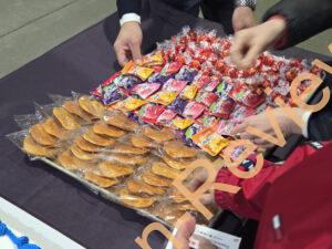 入り口から少し進むと「エグゼクティブ会員様限定 特別感謝イベント」と掲示があり、大型の特別展示用ケーキと共にお菓子系が無料で配布されていました。