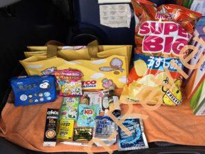 レジ会計後に入場に貰った「プレゼント・引換券」を渡すことで「専用のバッグ」と「ポテトチップス SUPER BIG」、「ローションティッシュ 肌うるる」、「試供品の数々」が貰えました。