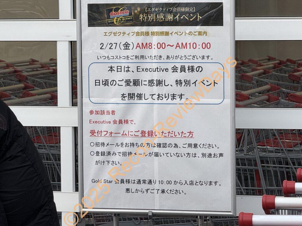 2026年2月27日 朝8時~10時迄行われたコストコのエグゼクティブ会員限定の「特別感謝イベント」に行ってきたので簡単なレポートを。