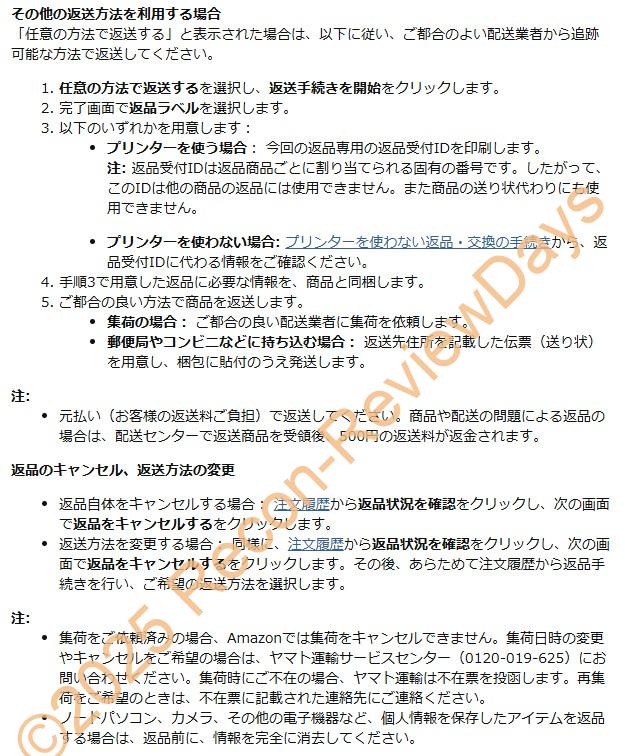 Amazonの「返品する」というページからも「日本郵便」に関する記述が無くなった
