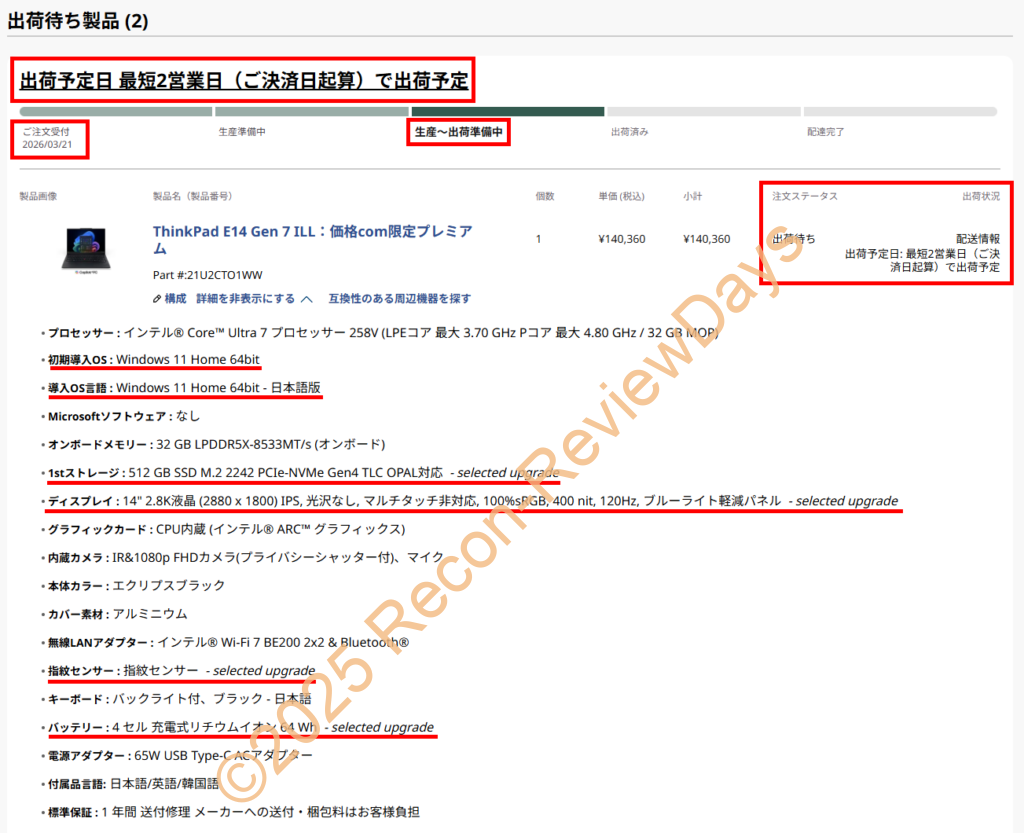 - ThinkPad E14 Gen 7 ILLが一向に出荷されないため、「納期窓口」に電話で納期を確認してみた – Recon-ReviewDays