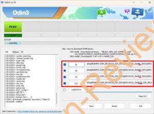 「BL」、「AP」、「CP」、「CSC」のファイル系を1つずつODINで読み込ませていきます。